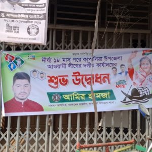 আ.লীগ কার্যালয়ে ছাত্রলীগের ‘শুভ উদ্বোধন’ ব্যানার
