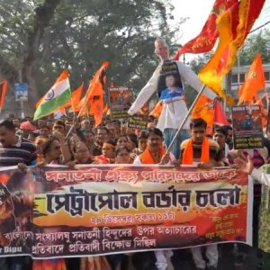 বাংলাদেশে হিন্দু সম্প্রদায়ের ওপর নির্যাতনের অভিযোগ তুলে বেনাপোলের ওপারে ভারতের পেট্রাপোল বন্দর এলাকায় বিক্ষোভ সমাবেশ করেছে সনাতনী ঐক্য পরিষদ। বুধবার (২৪ ডিসেম্বর) দুপুরে এ সমাবেশের ডাক দেয় তারা।
