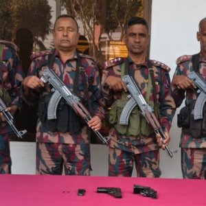যশোরের শার্শা উপজেলার বেনাপোল সীমান্তে বিশেষ অভিযান চালিয়ে দুটি বিদেশি পিস্তল, একটি ম্যাগাজিন এবং দুই রাউন্ড গুলি উদ্ধার করেছে যশোর ৪৯ বিজিবি। সোমবার (৯ ফেব্রুয়ারি) ভোরে এ অভিযান চালানো হয়।