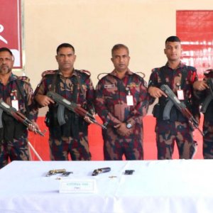 রাজশাহী সীমান্তে দুটি বিদেশি পিস্তল, চারটি ম্যাগাজিন, আট রাউন্ড গুলি উদ্ধার করেছে বর্ডার গার্ড বাংলাদেশ-বিজিবি। শুক্রবার (৬ ফেব্রুয়ারি) ভোর সাড়ে ৫টার দিকে বাঘা থানাধীন ভারত সীমান্তবর্তী রাওথা এলাকায় অভিযান চালিয়ে এই অস্ত্রগুলো উদ্ধার করা হয়। এ সময় বিজিবির উপস্থিতি টের পেয়ে পাচারকারী মোটরসাইকেলসহ অস্ত্রগুলো ফেলে পালিয়ে যায়।