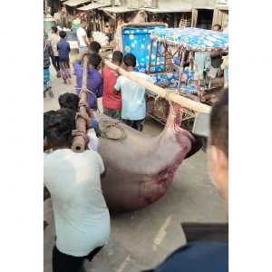 মেঘনায় জালে ধরা পড়েছে ৬ মণ ওজনের শাপলাপাতা মাছ