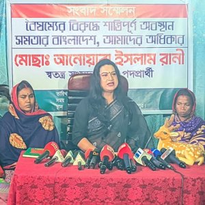 সংসদে তৃতীয় লিঙ্গ ও প্রান্তিক জনগোষ্ঠীর জন্য সংরক্ষিত আসনের দাবি জানিয়ে ত্রয়োদশ জাতীয় সংসদ নির্বাচন থেকে সরে দাঁড়ানোর ঘোষণা দিয়েছেন দেশের একমাত্র হিজড়া সংসদ সদস্য প্রার্থী আনোয়ারা ইসলাম রানী। শনিবার (৭ ফেব্রুয়ারি) রাত ৮টায় রংপুর নগরীর নুরপুর এলাকায় ‘ন্যায় অধিকার’ সংগঠন কার্যালয়ে আয়োজিত সংবাদ সম্মেলনে তিনি এই সিদ্ধান্তের কথা জানান।