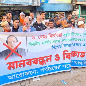 সাবেক এমপিদের ‘অপদার্থ’ বলায় রেজা কিবরিয়ার বিরুদ্ধে মানববন্ধন
