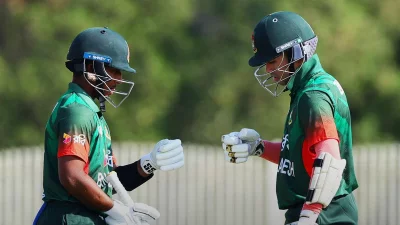 ১৩১ রানের ছোট লক্ষ্য তাড়া করতে নেমে শুরুটা ভালো করতে পারেনি বাংলাদেশ। তরুণ টাইগাররা 29 রানে কয়েকটি উইকেট হারিয়ে কিছুটা চাপ অনুভব করে। রিফাত বে ৫ ও আজিজ তামিম এক রান করে সাজঘরে ফেরেন।
