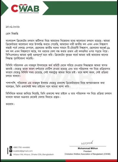 সিবিআই পরিচালক এম নাজমুল ইসলামের পদত্যাগের দাবিতে অনড় ছিল ক্রিকেটার্স ওয়েলফেয়ার অ্যাসোসিয়েশন অব বাংলাদেশ (কুয়াব)। কিন্তু সংগঠনটি এ অবস্থান থেকে সরে আসে। শুক্রবার (১৬ জানুয়ারি) থেকে ক্রিকেটে ফিরতে প্রস্তুত ক্রিকেটাররা। তবে এর জন্য তারা কিছু শর্ত দিয়েছে।